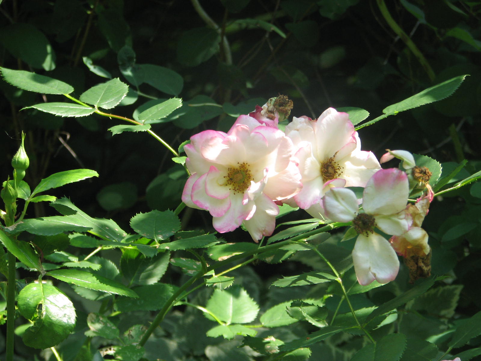 at the corner of the patio, mostly shaded in our gargantuan wisteria vine