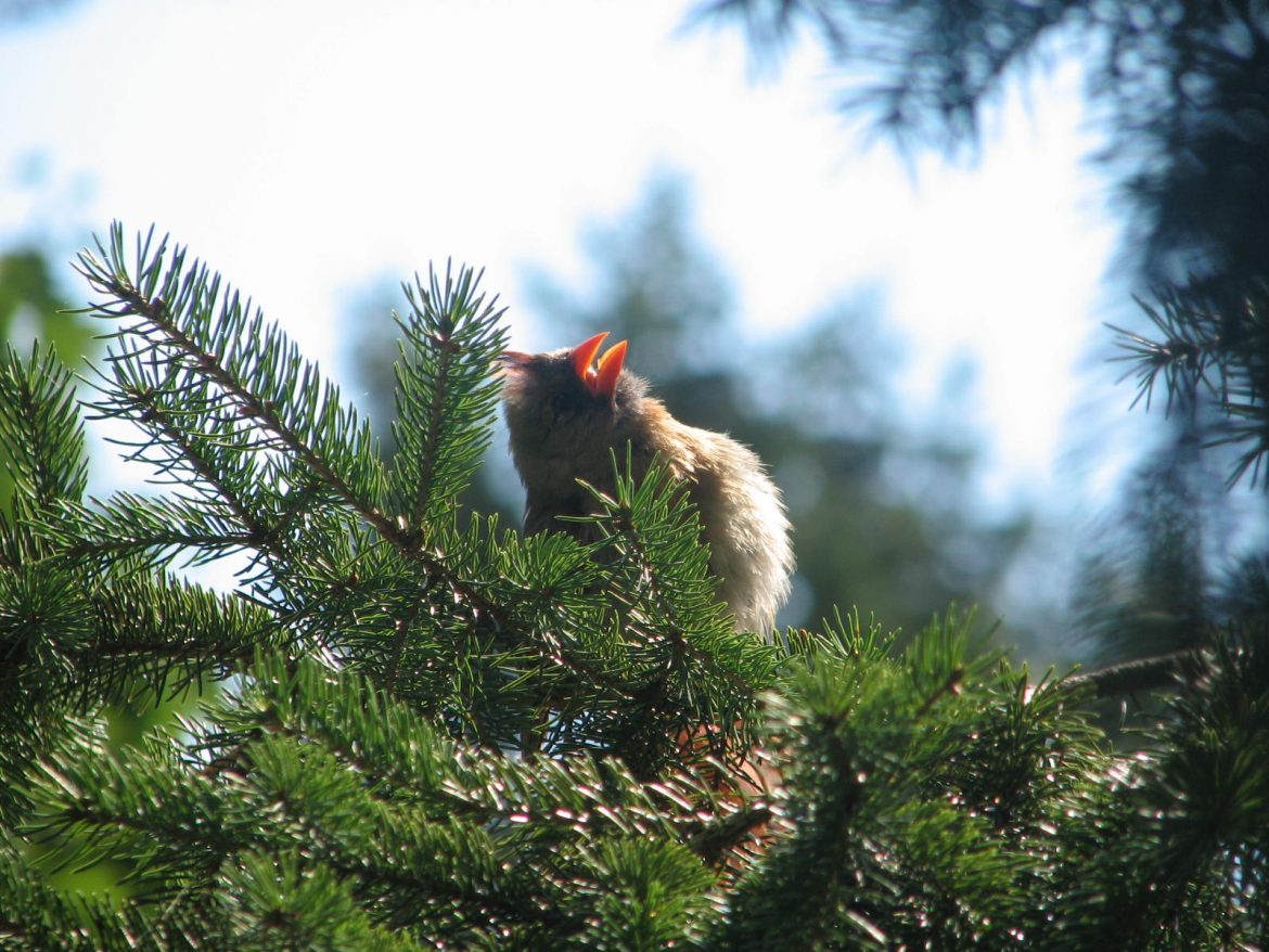 she is caroling joy into a bright blue sky (although she is not making a sound),